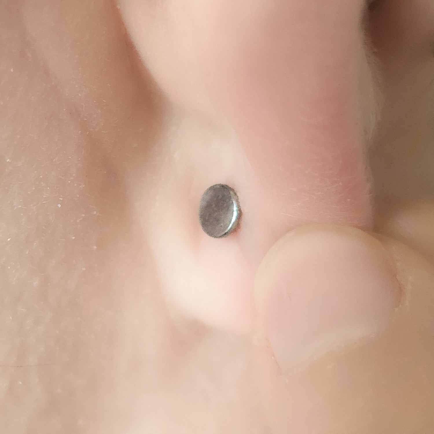 Dazu kommt ein flacher Verschluss hinten am Ohr,